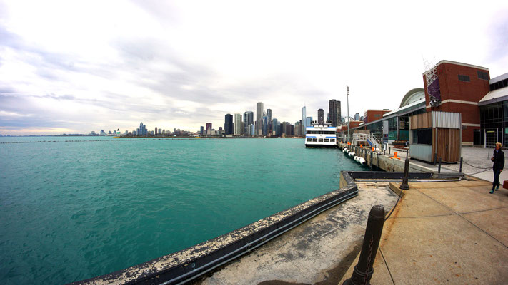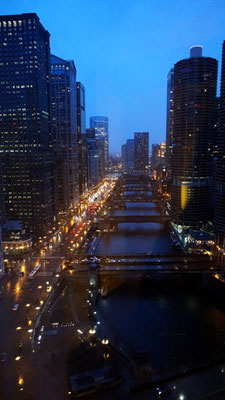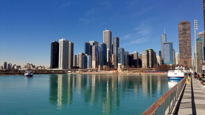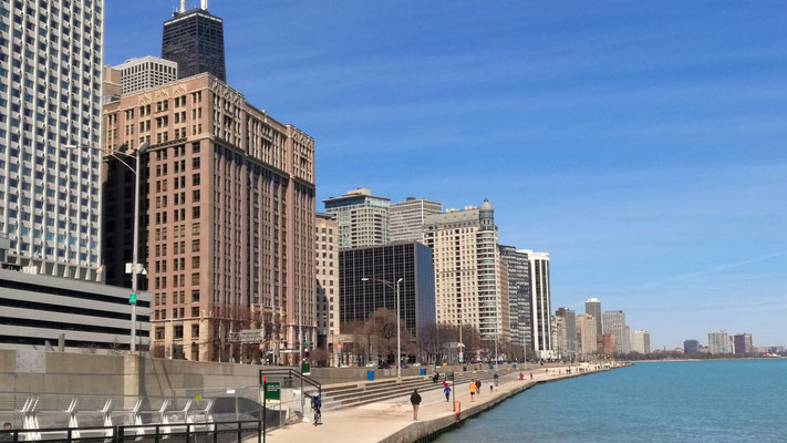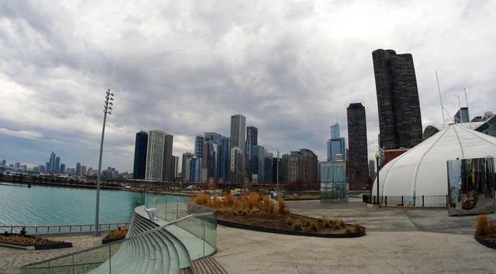 Direkt an der Riverfront des Chicago River gelegen erkundeten wir die nächste Umgebung, flanierten zum Navy Pier, passierten einen Teil der Magnificent Mile, Millennium Park und mehr, und stellten uns vor, wie schön das alles sein musste bei blauem Himmel und warmen Temperaturen. Gut, es war gerade mal Ende März, dass es noch winterlich kühl war hatten wir erwartet. Aber der kalte Wind und das frische Nass von oben waren schon mehr als ungemütlich, so dass wir uns bereits am frühen Abend in unser Hotel zurückzogen und von dort aus die tollen Ausblicke auf die Wolkenkratzer der Stadt genossen. Wir waren müde von der Anreise und Morgen war schließlich auch noch ein Tag.