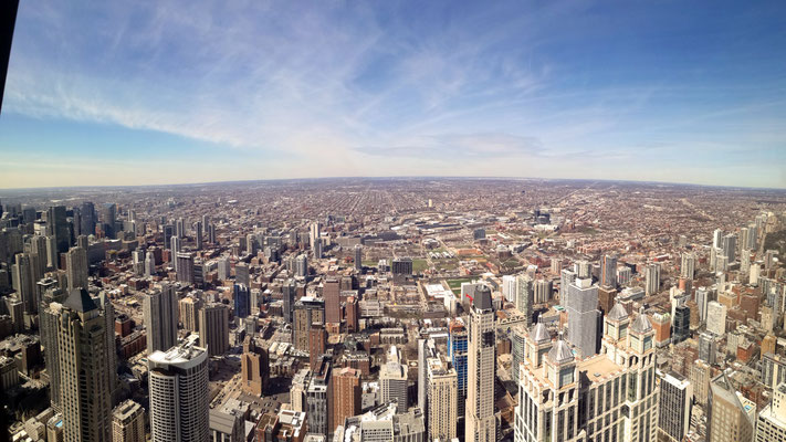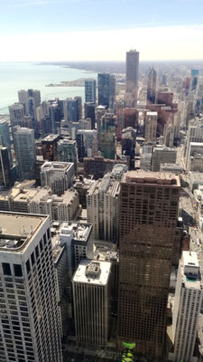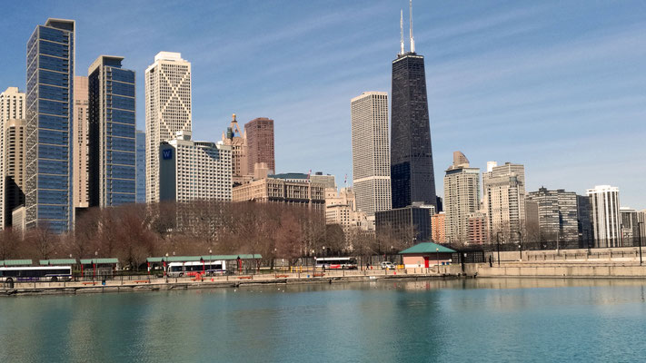 Da unser Flug am Abreisetag erst am späten Nachmittag ging hatten wir nochmals Gelegenheit, Chicago in herrlichem Sonnenschein zu genießen. Und natürlich nutzten wir die Gunst der Stunde, flanierten in chilliger Atmosphäre am Navy Pier und bewunderten die herrliche Skyline, die wir zu Beginn unserer Reise nur im dunklen Regengrau erlebt hatten. Jetzt konnten wir auch noch die wunderschöne Aussicht vom John Hancock Tower genießen, wo wir es uns oben im Restaurant nicht nehmen ließen ein Drink einzunehmen.